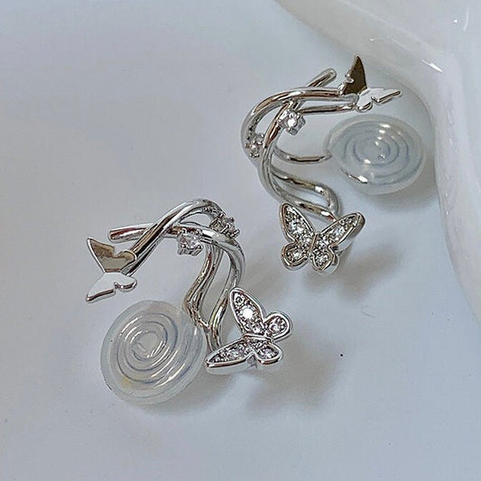 金/银蝴蝶弯钩气质耳夹 Butterfly Zircon Clip On Earring