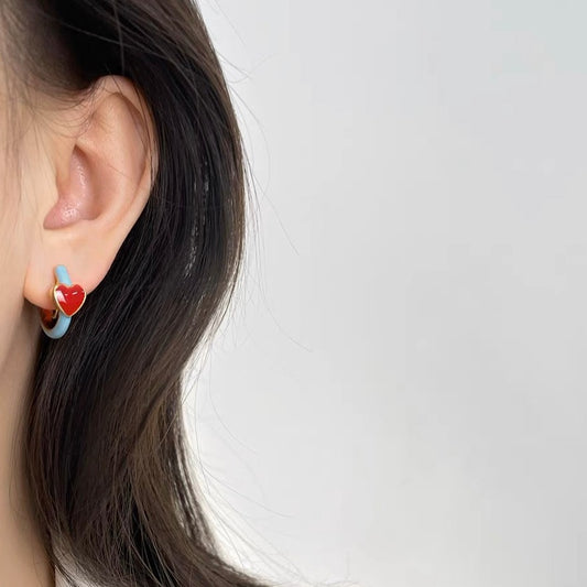 Sold out红心海蓝撞色耳圈耳夹 Clip On Earring