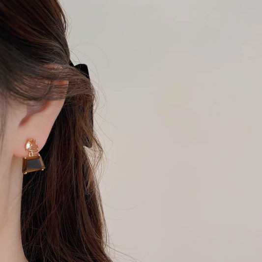 森系不对称方形花朵耳夹 Asymmetric Clip On Earring