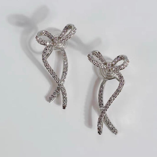 蝴蝶结丝带耳夹 Silver Bow Zircon Clip On Earring