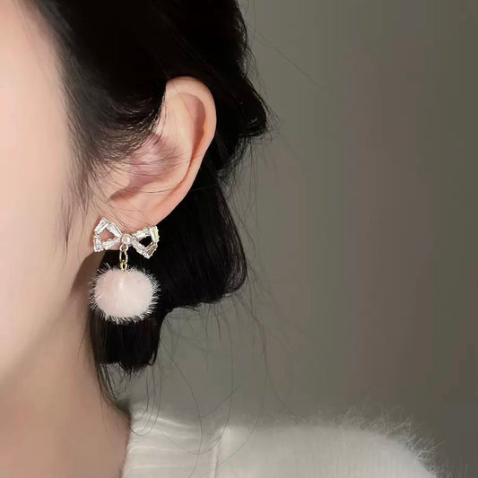 闪钻蝴蝶结毛球耳夹 Clip On Earring