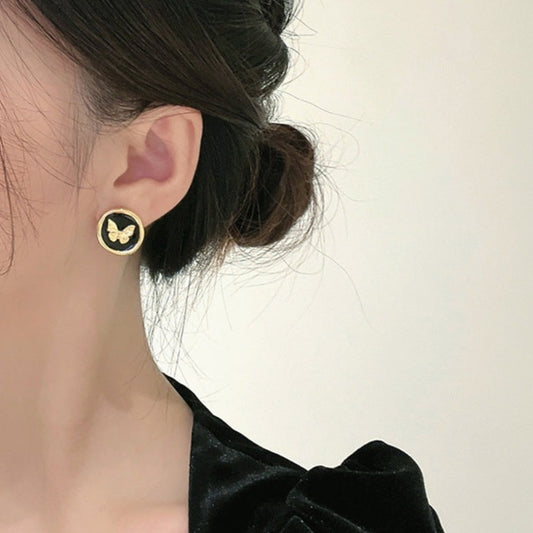 黑/白蝴蝶圆盘耳夹 Clip On Earring
